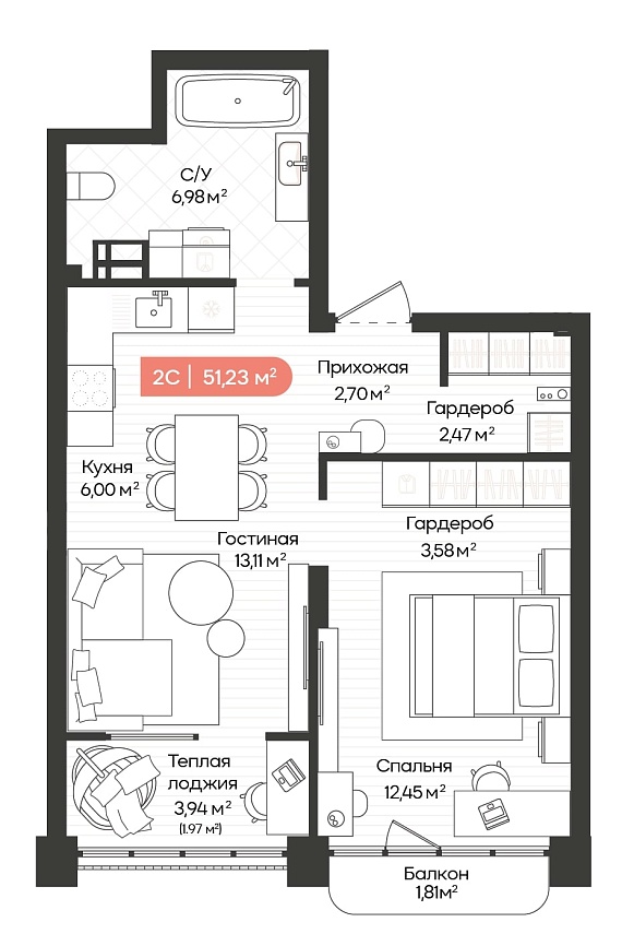 2К квартира 53,04 м²