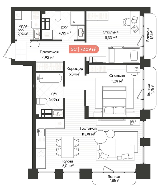 Предчистовая отделка в каждой квартире — надежный старт на пути к интерьеру мечты. Вас ждет идеально чистое пространство с продуманной планировкой, ровными стенами, подготовленными гипсовой штукатуркой, фиброцементной стяжкой полов с шумоизоляцией, готовой разводкой электричества, отопления и сантехники.