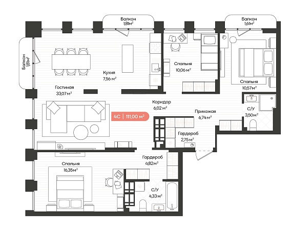 4К квартира 111 м²
