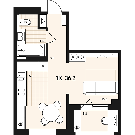 1К квартира 36,2 м²