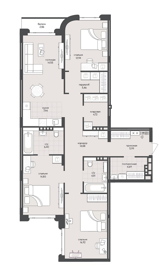 3К квартира 116,96 м²
