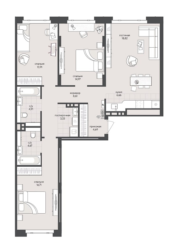 Предчистовая отделка в каждой квартире — надежный старт на пути к интерьеру мечты. Вас ждет идеально чистое пространство с продуманной планировкой, ровными стенами, подготовленными гипсовой штукатуркой, фиброцементной стяжкой полов с шумоизоляцией, готовой разводкой электричества, отопления и сантехники.