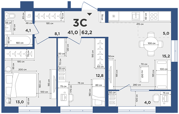 3К студия 62,2 м²