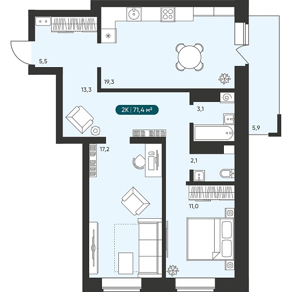 От студий до просторных квартир с двумя санузлами и гардеробными