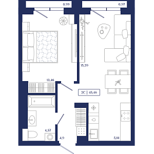 2К квартира 46,95 м²