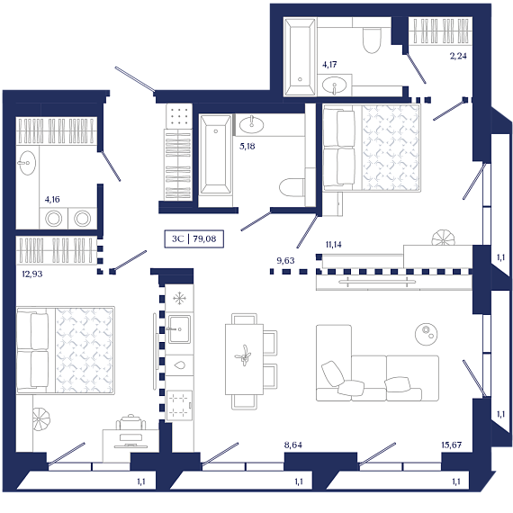 Предчистовая отделка в каждой квартире — надежный старт на пути к интерьеру мечты. Вас ждет идеально чистое пространство с продуманной планировкой, ровными стенами, подготовленными гипсовой штукатуркой, фиброцементной стяжкой полов с шумоизоляцией, готовой разводкой электричества, отопления и сантехники. Оставить заявку