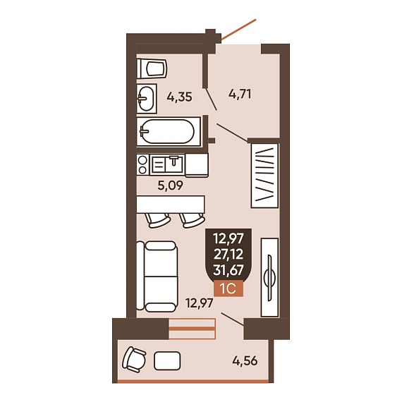 Представлены варианты квартир-студий от 27,26 м² до просторных трёхкомнатных планировок площадью 90,15 м² с мастер-спальнями и гардеробными