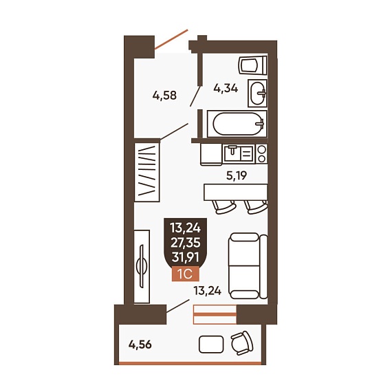 Представлены варианты квартир-студий от 27,26 м² до просторных трёхкомнатных планировок площадью 90,15 м² с мастер-спальнями и гардеробными