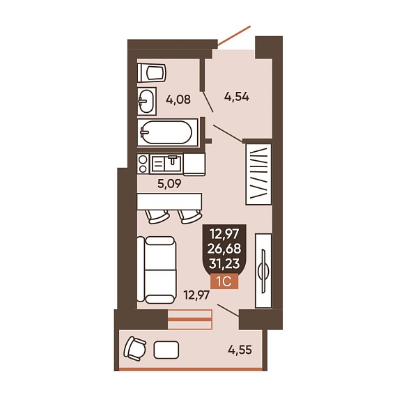 1К квартира 31,23 м²