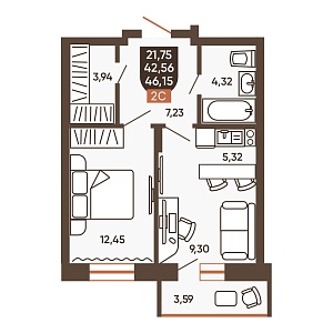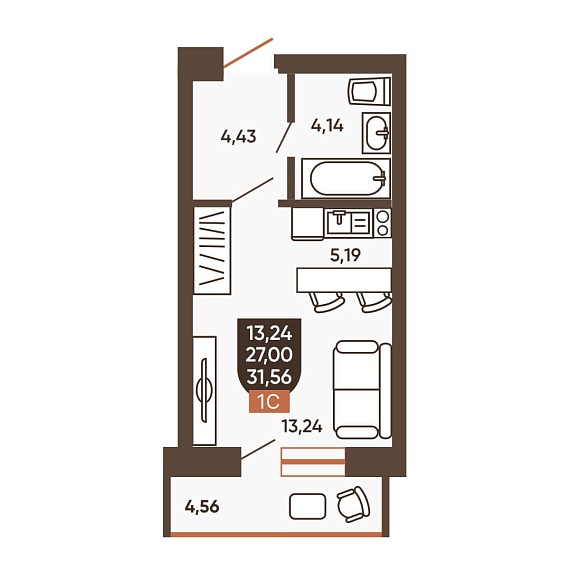 Представлены варианты квартир-студий от 27,26 м² до просторных трёхкомнатных планировок площадью 90,15 м² с мастер-спальнями и гардеробными