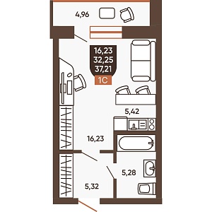 1К квартира 34,84 м²