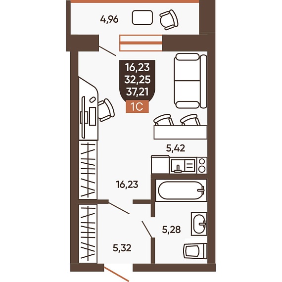 Представлены варианты квартир-студий от 27,26 м² до просторных трёхкомнатных планировок площадью 90,15 м² с мастер-спальнями и гардеробными