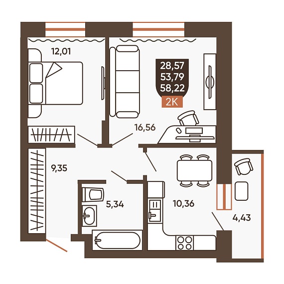 Представлены варианты квартир-студий от 27,26 м² до просторных трёхкомнатных планировок площадью 90,15 м² с мастер-спальнями и гардеробными