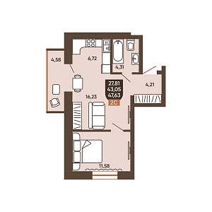 Представлены варианты квартир-студий от 27,26 м² до просторных трёхкомнатных планировок площадью 90,15 м² с мастер-спальнями и гардеробными