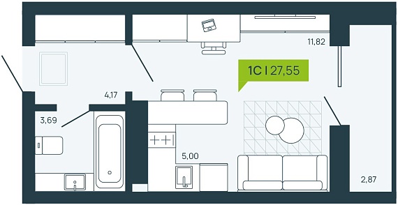 1К студия 27,56 м²