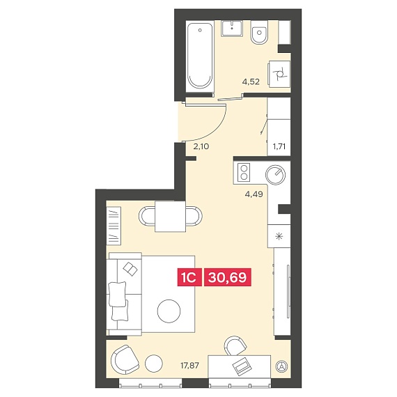 1К студия 30,69 м²
