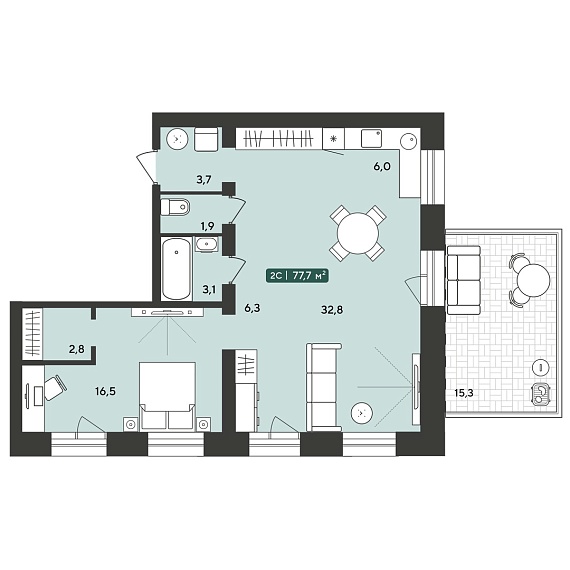 2К квартира 77,7 м²