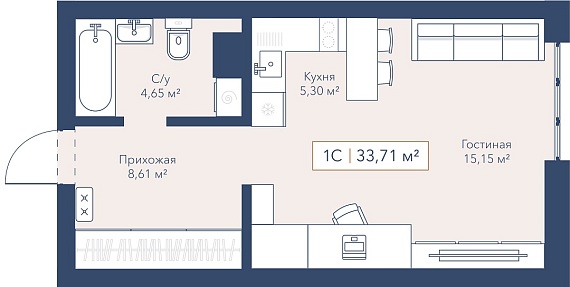 1К квартира 33,71 м²