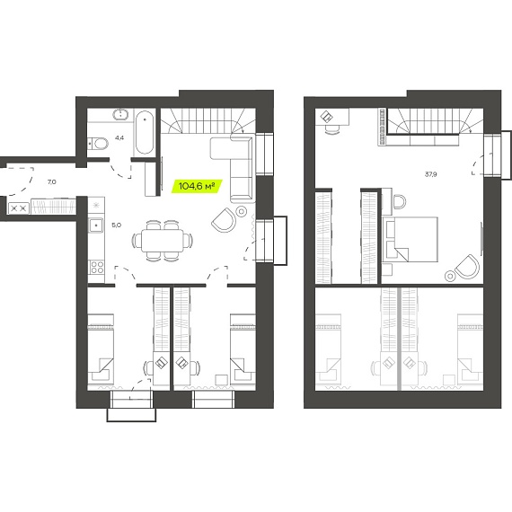 Квартиры от 33 до 104 м²