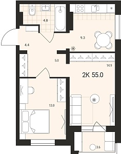 1К квартира 43,1 м²