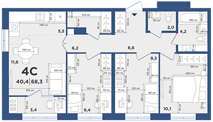 2К студия 45,5 м²