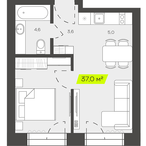 1К квартира 36,96 м²