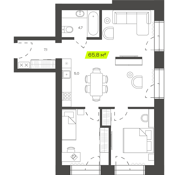 3К квартира 65,83 м²