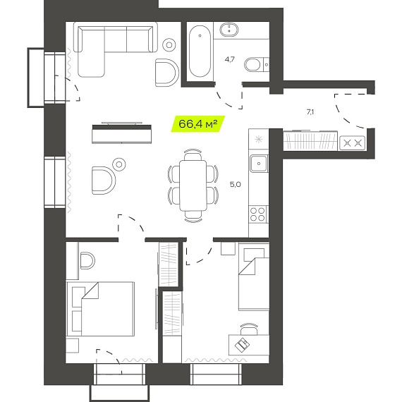 3К квартира 66,44 м²