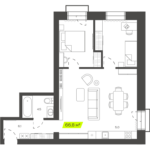 3К квартира 66,54 м²