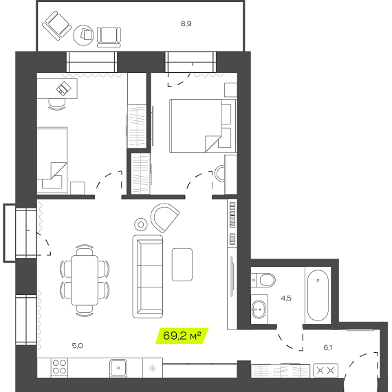 3К квартира 69,22 м²