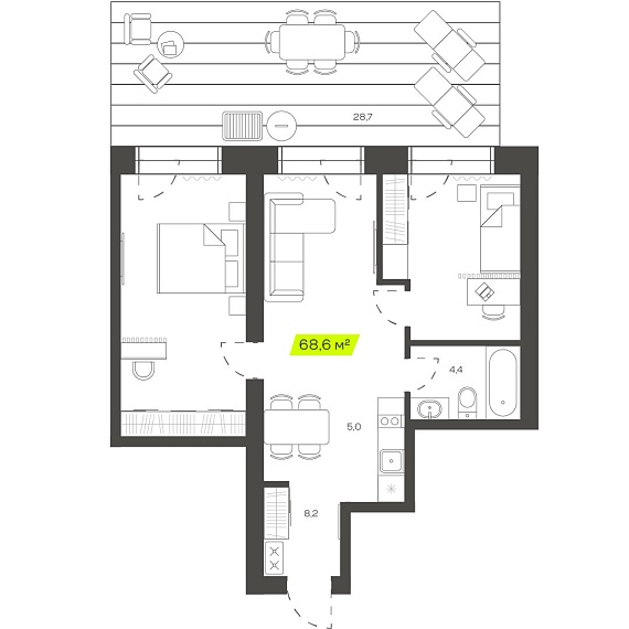 3К студия 68,56 м²