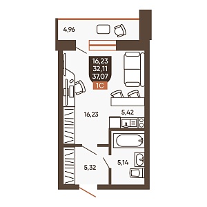 1К квартира 31,51 м²