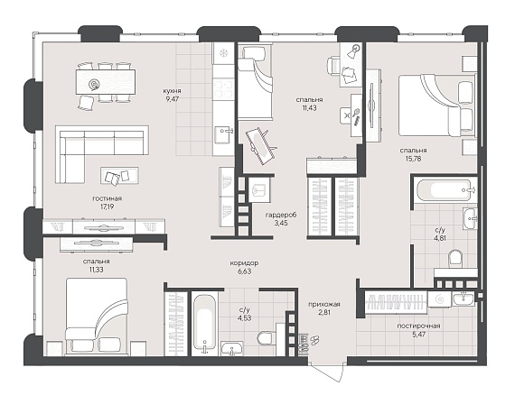3К квартира 92,9 м²