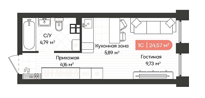 2К квартира 38,68 м²