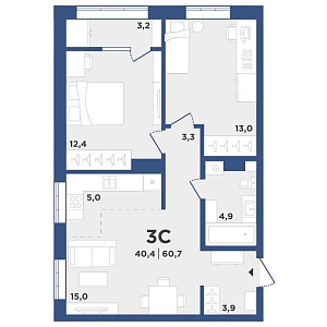 2К студия 38 м²