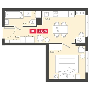 2К квартира 51,87 м²