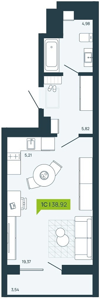 1К студия 38,86 м²