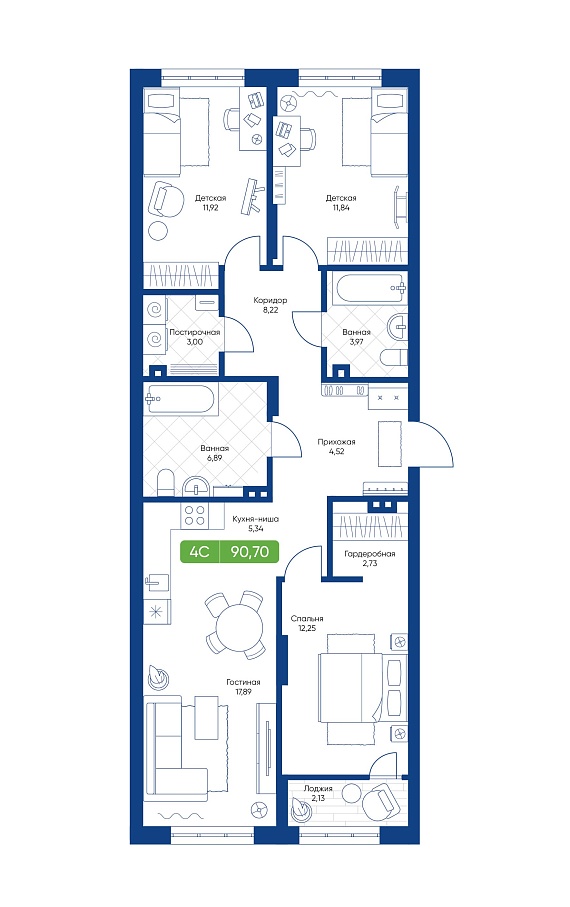 От студий до просторных 4С с двумя санузлами и гардеробными