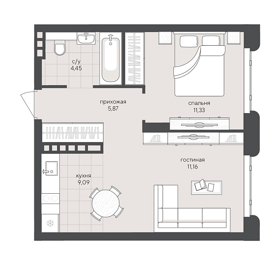 Предчистовая отделка в каждой квартире — надежный старт на пути к интерьеру мечты. Вас ждет идеально чистое пространство с продуманной планировкой, ровными стенами, подготовленными гипсовой штукатуркой, фиброцементной стяжкой полов с шумоизоляцией, готовой разводкой электричества, отопления и сантехники.