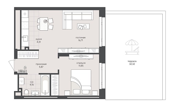 1К квартира 75,22 м²
