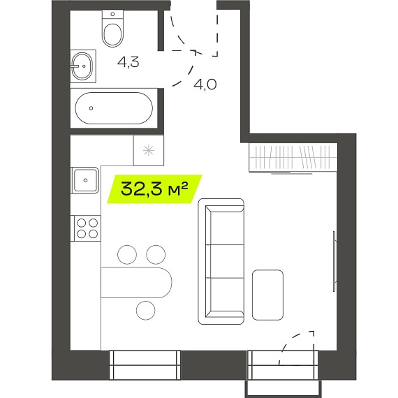 1К студия 32,27 м²