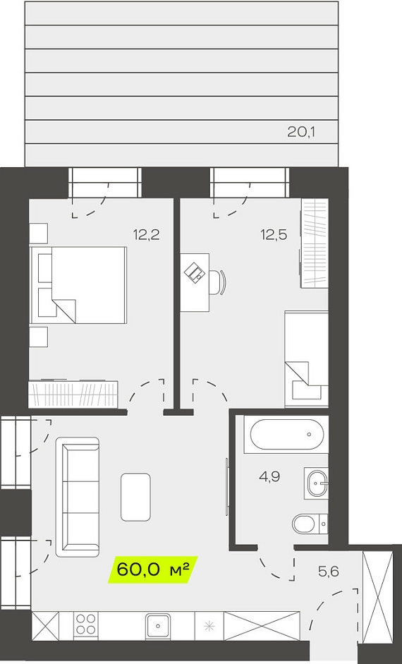 3К студия 59,95 м²