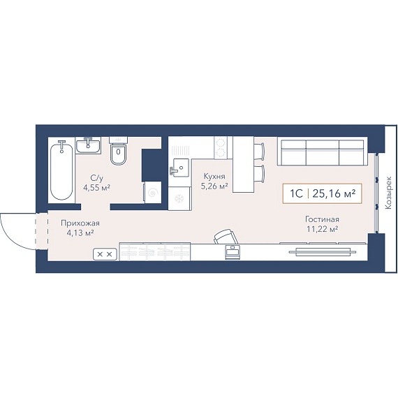 1К студия 25,3 м²
