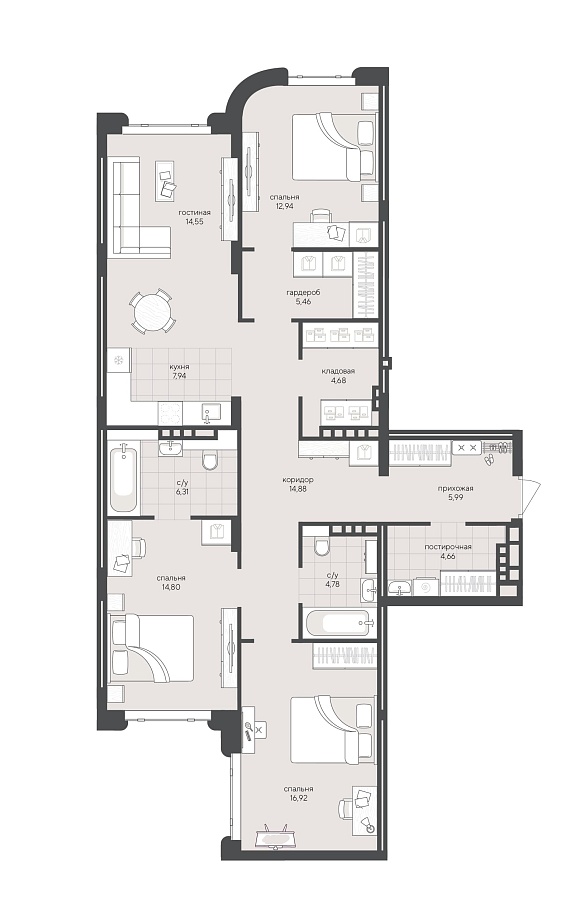 3К квартира 113,91 м²