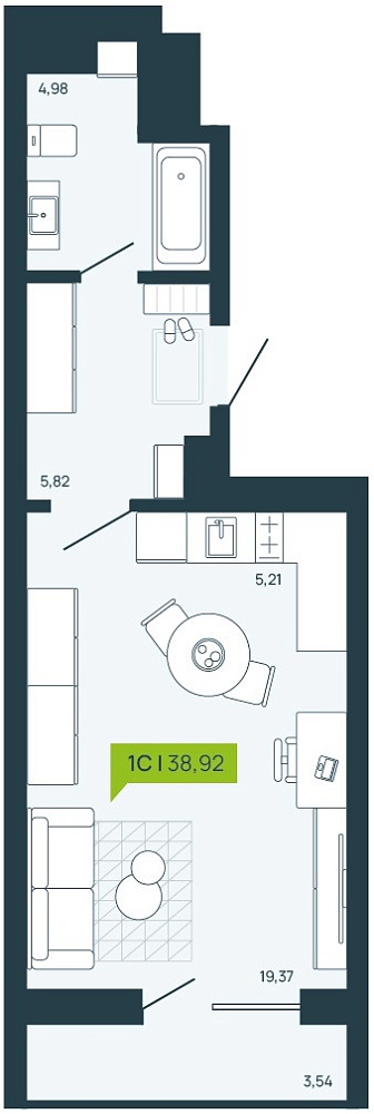 1К студия 38,86 м²