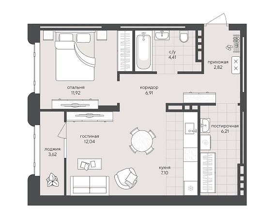 1К квартира 55,03 м²