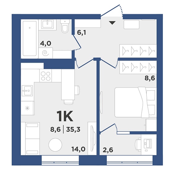 1К квартира 35,3 м²