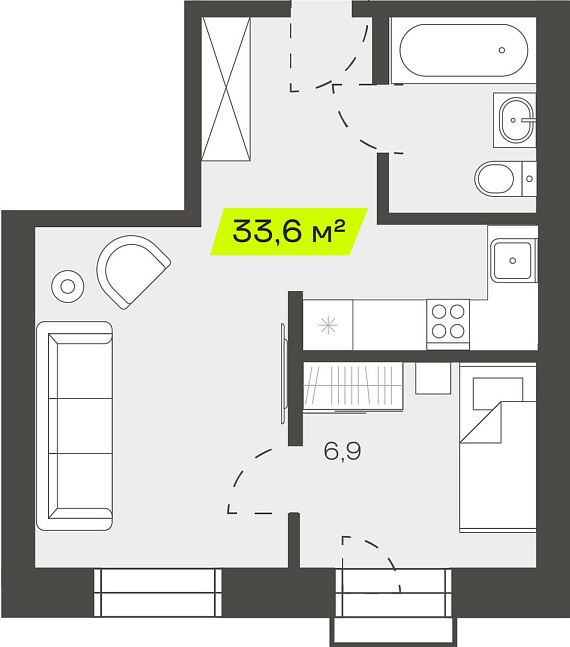 2К студия 33,59 м²
