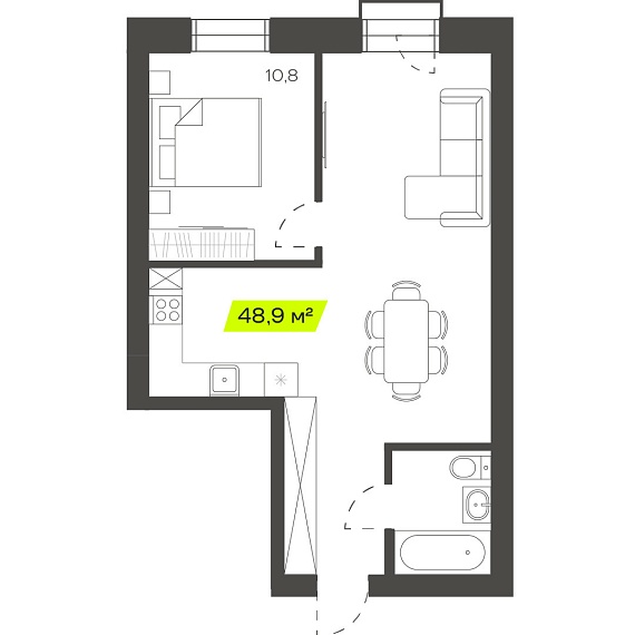 2К студия 48,91 м²