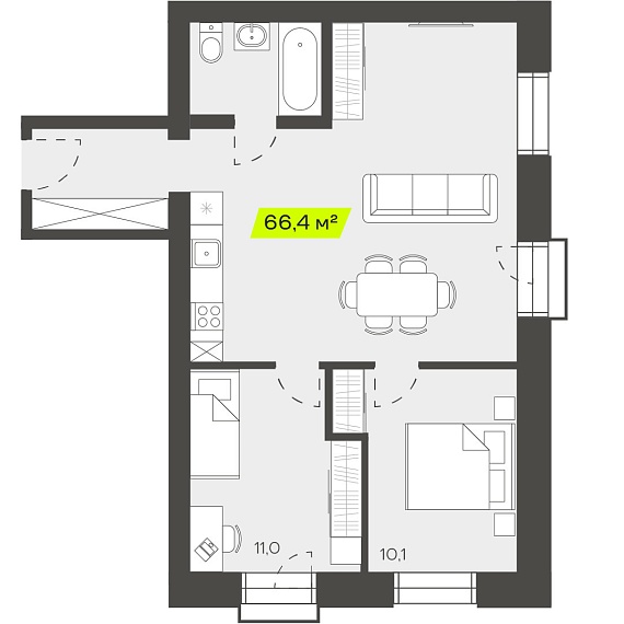 3К студия 66,45 м²